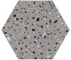 Crafted with meticulous attention to detail, each 8 x 9 porcelain field tile boasts a stunning gray background, subtly enriched with flecks of black, blue, and sparkling agate chips. The exquisite combination of colors and textures provides a visually captivating surface that catches the light and adds an element of depth to your floors. The hexagon shape further elevates the design, allowing for creative laying patterns that can transform any space from ordinary to extraordinary.