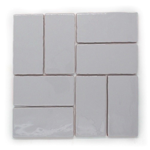 Inspired by the design of a woven basket, the basket weave or geometric style creates a unique effect. This style is created by laying the subway tiles in groups that form square blocks, with tiles placed at 90-degree angles to each other. How many tiles are used depends on the ratio between the length and width of the tiles.