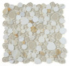 The Calacatta Gold NB3926 pebble mosaic tile brings together the timeless beauty of natural marble with the modern elegance of glass. Each 12" x 12" sheet is a harmonious blend of sliced Calacatta Gold marble pebbles and smooth, rounded glass tiles in beige and white tones. The result is a warm, refined texture that enhances both traditional and contemporary spaces.