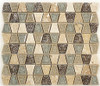 The Bella Glass Tiles Tranquil Series Trapezoid - Tender Harbor TS-930 offers a stunning combination of natural and modern elements, perfect for enhancing any space. This unique mosaic features light gold travertine tiles that exude warmth and elegance, complemented by two distinct tones of crackle glass tiles for added texture and visual appeal. The design is further elevated with decorative resin inserts, creating a luxurious blend of materials that effortlessly catches the eye.